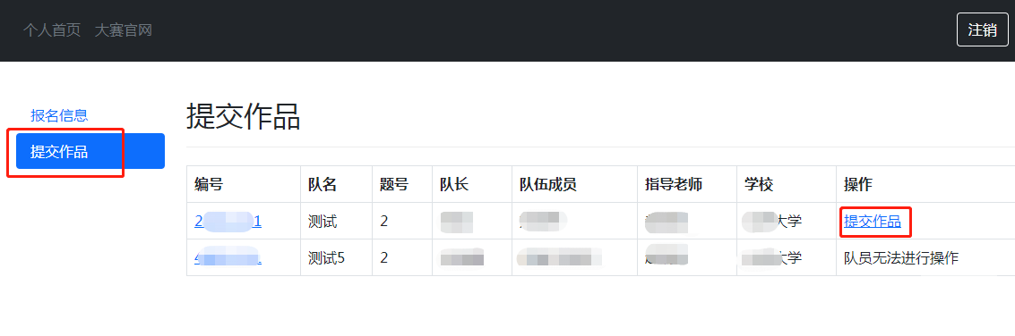 1、队长登陆“中国软件杯”大赛官网报名系统,点击“提交作品”按钮: